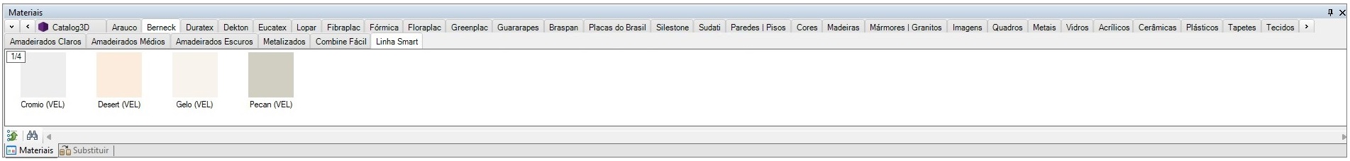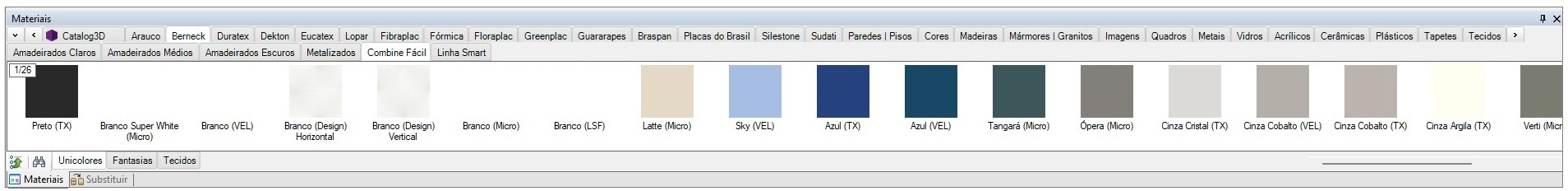 2. Corrigida a situação em que o cadastro do material Calcare (VEL) do fabricante Berneck estava com o nome incorreto entre as opções Vertical e Horizontal, e assim exibia inconformidade ao utilizar o Plugin Catalog Configuration. (1773111)