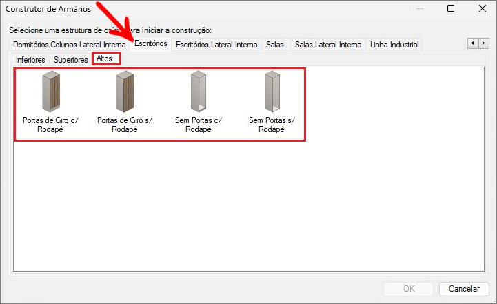1. Disponibilizados novos módulos Inferiores, Portas de Giro s/ Rodapé e Portas de Giro c/ Rodapé, que podem ser encontrados no Construtor de Armários nas linhas Salas e Salas Lateral Inteira. Os novos módulos podem ser configurados nos seguintes caminhos: