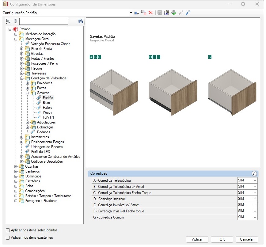 12. Corrigida a situação em que alguns itens da aba ferragens, perfis, trilhos e fitas de borda não estavam disponíveis na aba de Configuração de Preços. (1769708)